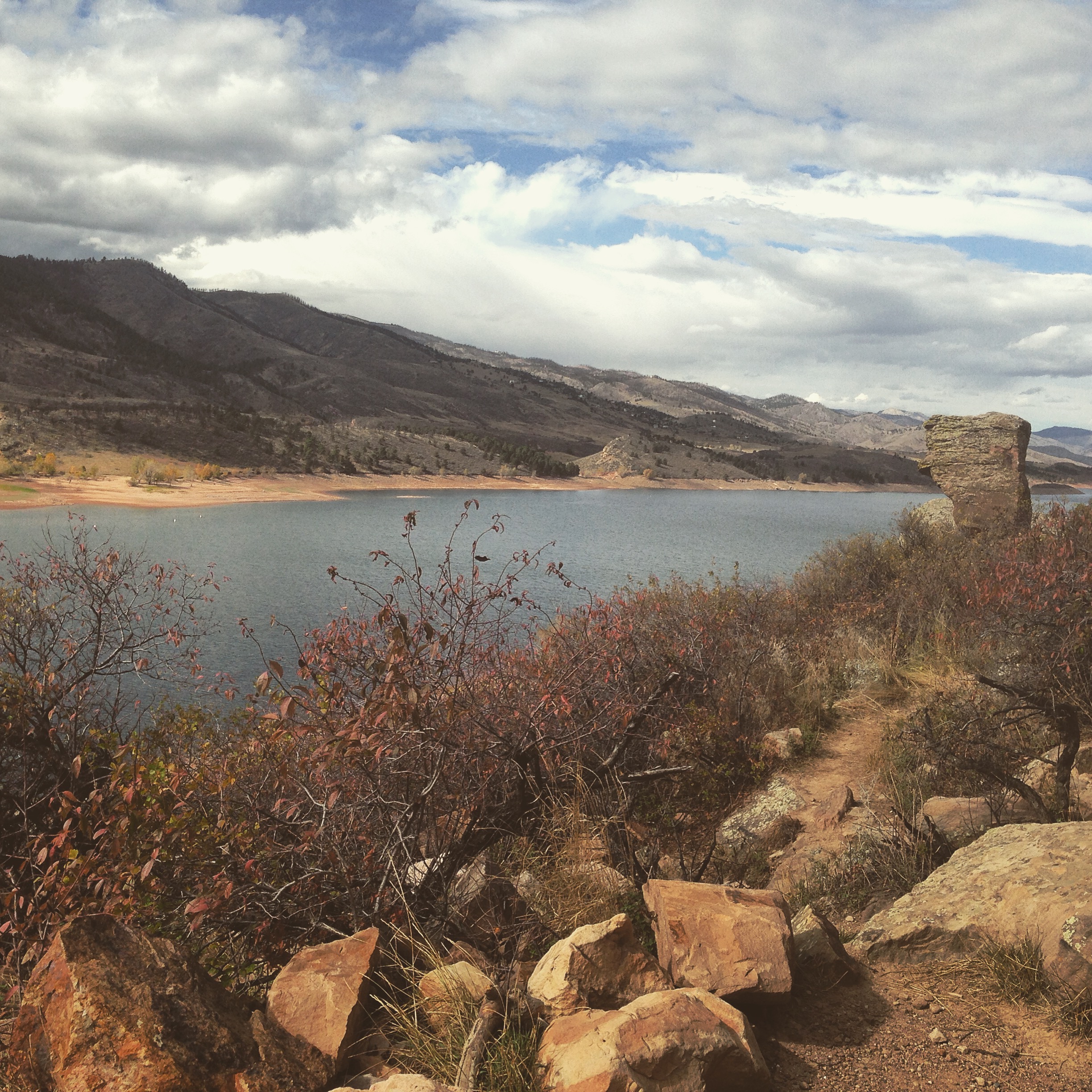 My motivation in my head was extremely high, but when I walked up to the first boulders at Horsetooth near Fort Collins, Colorado, I suddenly realized that a 10m v0 even wasn’t going to happen by myself. I tried to think positive, but then a low rattling sound made my heart drop – a rattlesnake lay across the path, just a few feet from my legs. The dry jingle of it’s tail made me realize even moreso that if I was bitten I would still be all alone. I backed up and moved to a high line of boulders, hoping that the snake would stay where it was. I decided to make up some problems, tossing the guidebook aside and taking what low climbs I could handle, something this guidebook guzzling girl never would dream of before. The sound of my shoes on the ground and the shuffling of the mat left a hallow feeling like I would hear the snake again instead, so I put on some music just like I was at the indoor gym.
