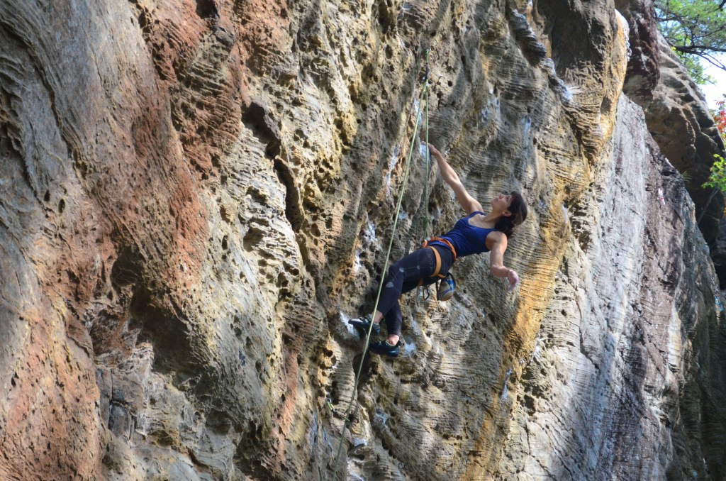 My heart fluttered the whole way to the top but I sent it. I had to. Then I battled through a 6c and a 7a+ to follow, but the adrenaline left me exhausted, skin shredded, and callouses torn from my palms in the heat and humidity. I’d gone climbing, but I couldn’t be sure I was having fun yet.